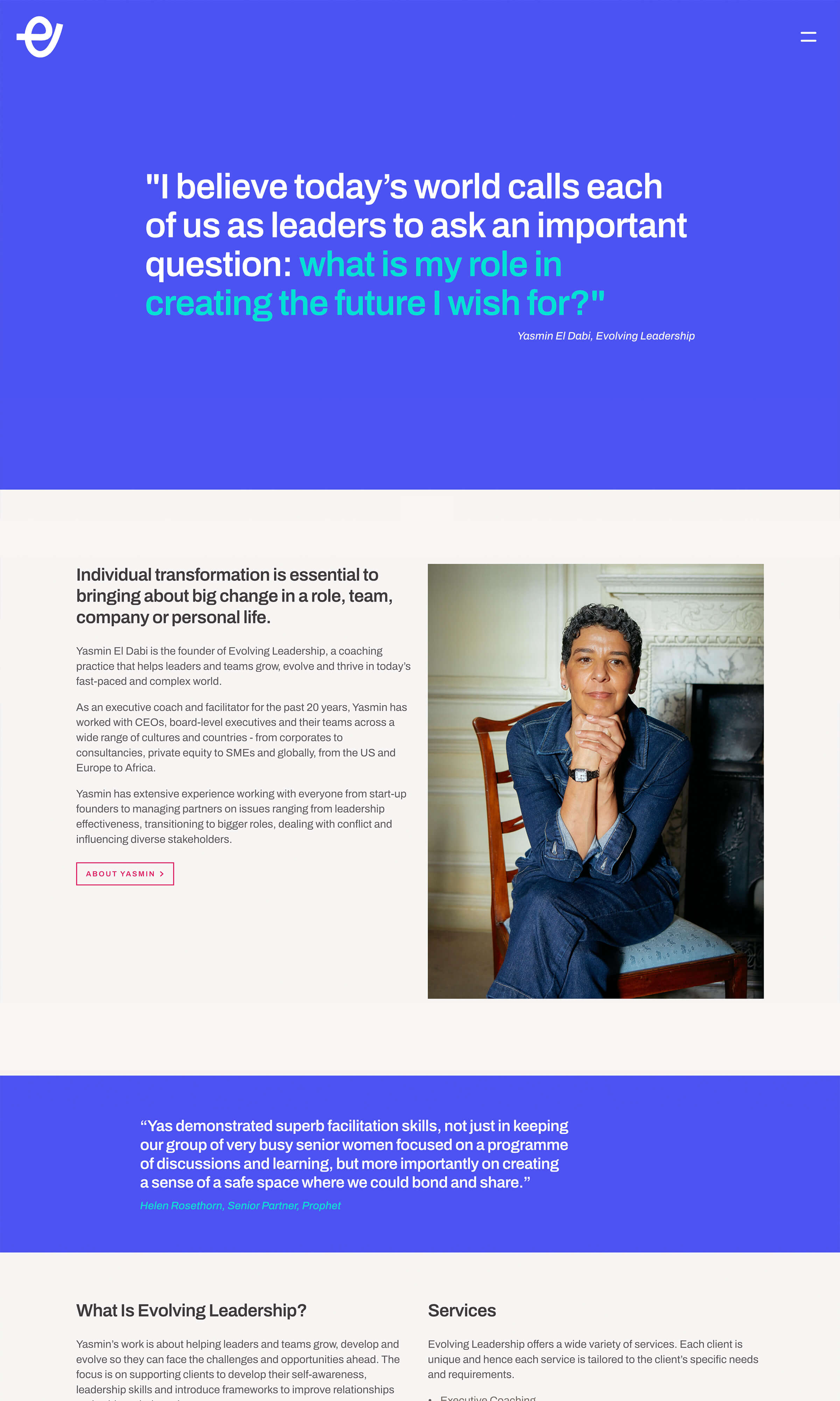 A content-focused website for a progressive leadership coach, built to support thought leadership and client engagement.