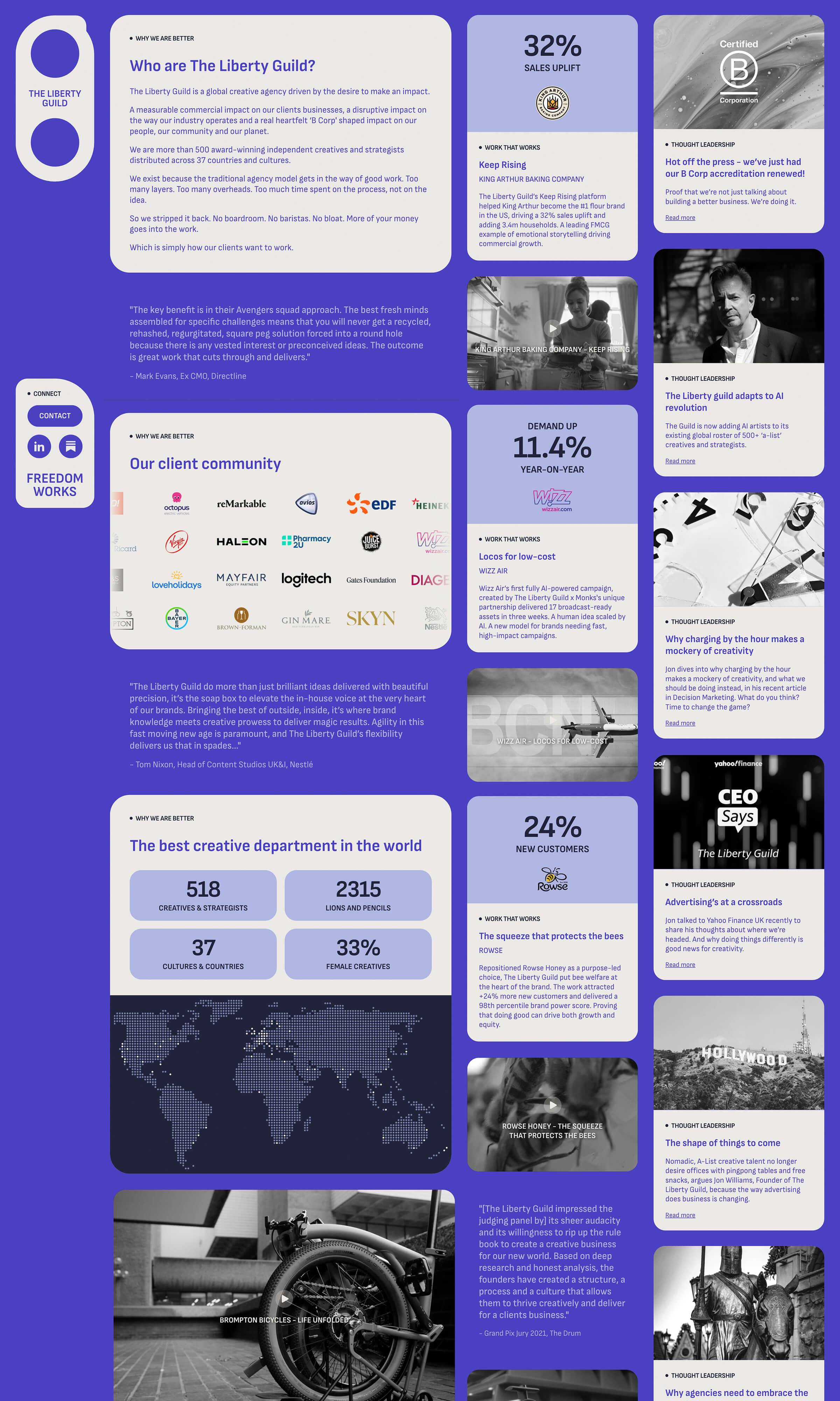 A design and build for a global creative agency with an emphasis on bold visual storytelling and custom interactive experiences.